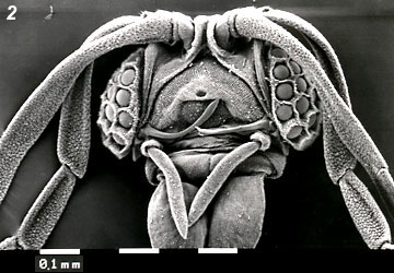 Strepsiptera exhibit extreme sexual dimorphism, which is most pronounced in the suborder Stylopidia. Strepsipteran males emerge from the host after endoparasitic pupation in the host. Adult males are free-living, and their sole mission is to find and fertilize a female. They have reduced forewings and fan-shaped hind wings, branched antennae, and raspberry-like eyes (title image and fig. 2); the latter are very unusual among living insects and form a modern counterpart to the structural plan proposed for eyes of trilobites (Kinzelbach 1971, 1990, Kathirithamby 1989, Buschbeck et al. 1999).
